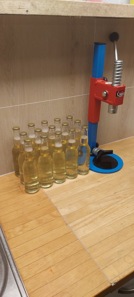 Alltid spennende å smake etter søtning og CO2. En uke på 2Bar og 5 grader. Trenger nok hardere behandling på kullsyren, men ble en fin fresh og god smak på denne.